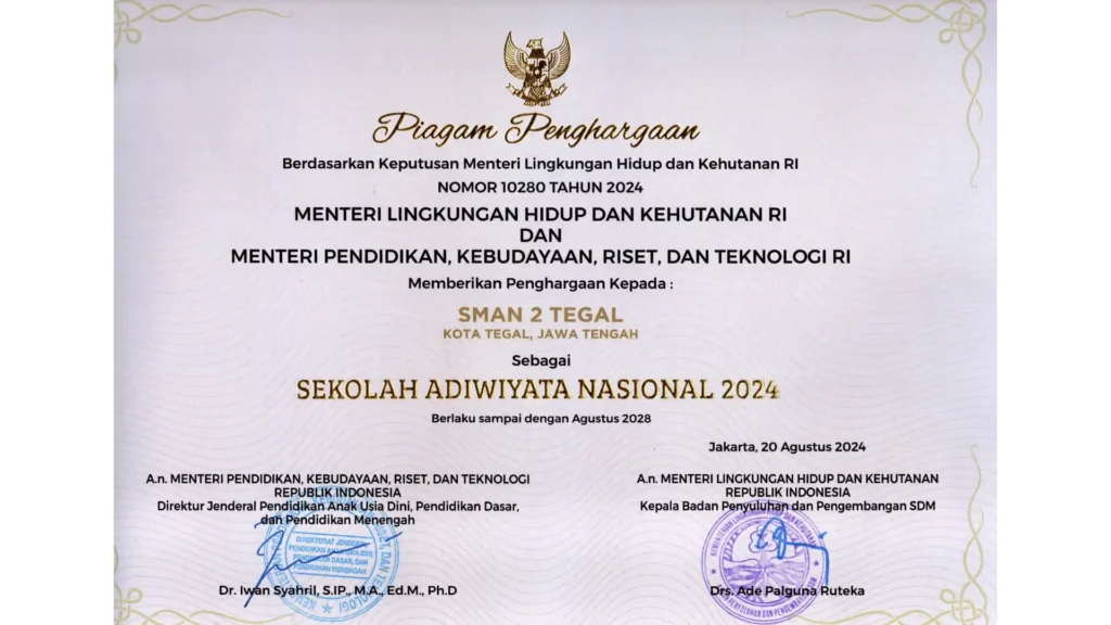 SMA Negeri 2 Tegal Kembali Dipercaya Oleh Kementerian Lingkungan Hidup dan Kehutanan Untuk Meneruskan Program Sekolah Adiwiyata Nasional